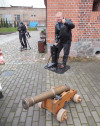 Может, это и правильно: сам молодой русский царь Пётр I учился артиллерийскому мастерству в крепости Фридрихсбург (ворота – всё, что от неё сохранилось). Поэтому открытие старого памятника на новом месте приурочили ко Дню ракетных войск и артиллерии – 19 ноября. Церемония началась ровно в полдень с выстрела орудия. А закрыл мероприятие сам сапог, на радость собравшимся выдавший из своих недр целый фейерверк.