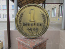 А теперь немного истории. Авторы памятника утверждают, что прообразом "копейки" послужила настоящая монета времен царя Михаила Федоровича (именно он подписал указ о создании Кузнецкого острога) - на памятнике прямо указано, что это монета чеканки 1619 года.