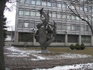 Согласно табличке около скульптуры, ее автор - Эрнст Неизвестный, и установлена она в 1972 году. Эта табличка - единственный источник информации об этом памятнике. Других сведений мне разузнать не удалось (может быть тут сыграла злую шутку фамилия автора? Надеюсь, что это просто совпадение). Единственное, что можно предположить, что появление композиции связано с ВИЛС - изготовлена она скорее всего из металла, разрабатываемого на предприятии.