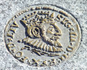 Вокруг памятника - целая россыпь "монет", в разное время ходивших на территории Литовского княжества. Историки уже спорят по поводу достоверности каждой монеты.