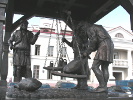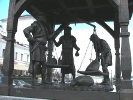Кроме привилегий по городскому самоуправлению, выборных должностей и т.д. Магдебургское право также предусматривало введение стандартизации мер и весов, эталоны которых хранились в городской ратуше. Поэтому памятник изображает процесс взвешивания, происходящий под присмотром представителя магистрата. В случае обвеса или обмана каждый мог обратиться к городским властям с жалобой. А случаи жульничества бывали - см. памятник "Весы с гирями" в Полоцке.