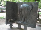 Этот памятник не представлял бы никакого интереса для моей коллекции, поскольку необычным его точно не назовешь. Но бронзовый баснописец сидит в окружении героев своих бессмертных произведений: Обезьяна перед зеркалом, отчаянно лающая вслед Слону Моська, Ворона с сыром и Лиса, "Проказница-Мартышка, Осел, Козел да косолапый Мишка", пытающиеся сыграть Квартет — всего 12 персонажей. И именно эти барельефы показались мне очень забавными. Во всяком случае, они пользуются гораздо большей популярностью у прохожих, чем сам их автор.