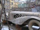 Помнится, мне пришлось протискиваться под решеткой, чтобы пробраться к ним и сделать несколько фото. И оно того стоило! Взять хотя бы автомобиль: капот, словно перетянутый кожаными ремнями, сиденье в виде раковины, рамка ветрового стекла, сделанная из швейных машинок. Даже рисунок протектора шин - и тот в виде карточных мастей.