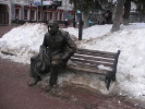 На Большой Покровской улице в Нижнем Новгороде на самой обычной лавочке скромно сидит неприметный человек, как будто только что вышедший из Нижегородского драматического театра и присевший на скамейку отдохнуть. Тем не менее, имя этого человека известно всем в нашей стране - это памятник великому актеру Евгению Александровичу Евстигнееву.