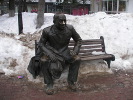 Многие говорят, что никакой это не памятник, а просто городская скульптура. Терминологию я оспаривать не буду. Да, у него нет высокого гранитного постамента, он никуда не указывает рукой, не поражает гигантскими размерами. Но спросите любого прохожего: что ему больше по душе - такая вот скромная "скульптура" или многие другие памятники, во множестве стоящие в наших городах? Судя по чуть ли не протертому до дыр носу бронзового Евстигнеева - ответ очевиден.