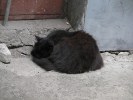 Кто поверит, что во дворе булгаковской квартиры кроме бронзового Бегемота живет еще и настоящий?! А он там есть! Огромное животное размером с молодого кабанчика тихо спало на крылечке музея и явно не желало "починять примусы".