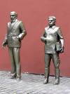 Но меня этот дом интересовал потому, что рядом со входом в музей стоят Коровьев с Бегемотом, переехавшие сюда из двора мастерской скульптора Рукавишникова. Неразлучная парочка все-таки заняла свое законное место, хотя и не то, которое изначально предполагал скульптор (а именно на Патриарших, в компании других персонажей "Мастера и Маргариты").