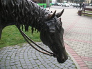 В центре Барановичей, перед гостиницей "Горизонт", стоит бронзовая лошадь. Появилась она здесь в 2009 году, ее автор - известный белорусский скульптор Владимир Жбанов (о других его работах можно почитать на странице "Барон Мюнхгаузен в Минске").