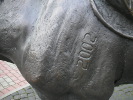 Лошадь в Барановичах интересна еще одним обстоятельством. Как уже было указано, установили ее в 2009 году, но на ее боку выбита другая дата - 2002. А дело в том, что у нее есть еще 2 сестры (или брата - не будем вдаваться в гендерные подробности). Старшая находится в Минске, а еще одна - в Курске. Они практически близнецы, поскольку отливались по одной форме. Но отличия все-таки есть. Во-первых, у двух других стремена присутствуют. А во-вторых, мизансцена: лошадь в Барановичах играет роль просто ездовой; лошадь в Курске принадлежит поручику Ржевскому, который сидит рядом с ней; а компанию лошади в Минске составляет воробей, присевший ей на холку.