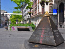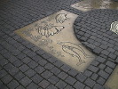Между Манежной и Красной площадями в Москве, около Вознесенских ворот в брусчатку встроен знак "Нулевой километр автомобильных дорог Российской Федерации". Знак был установлен в 1995 году, его автор - известный скульптор Александр Рукавишников (у меня на сайте представлено довольно много его работ - см. страницу "Мастерская Рукавишникова").