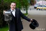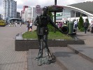 Очень симпатичная скульптура стоит на площади у Комаровского рынка в Минске - фигура фотографа, приглашающего прохожих сделать снимок, со стоящим рядом старинным фотоаппаратом на штативе. Здесь всегда много прохожих, каждый куда-то спешит, однако забавный фотограф зазывает остановиться хотя бы на мгновенье. А фотографирует он другого персонажа, установленного рядом - Даму с собачкой.