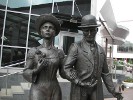 На главной платформе железнодорожного вокзала в Витебске стоит очень симпатичный памятник: элегантная дама с цветком в руке и мужчина в годах, нетерпеливо посматривающий на карманные часы, ожидают кого-то, видимо приезжающего на поезде. Пара одета по последней моде, но… начала прошлого столетия.