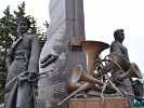 Сразу же после открытия памятника вокруг него разгорелся скандал: на геральдическом щите "1941" кроме образцов советского оружия - пистолетом-пулеметом Шпагина (более известным просто как ППШ) и ручным пулеметом Дегтярева,- невесть каким образом оказались немецкие винтовки Маузер 98k. Винтовки быстро спилили, а вместо них появились еще по одному ППШ и пулемету Дегтярева.