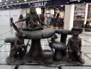 Это памятник Алисе в Стране Чудес: сама Алиса сидит на большом грибе, как бы устраивая прием другим персонажам - Болванщику (он же Безумный шляпник), робкой Мыши Соне, Чеширскому Коту и Белому Кролику (он же Мартовский заяц).