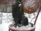 Вот этим спасителям во дворе дома 4 по улице Композиторов поставили памятник - это небольшая фигурка кошки, сидящей на стуле и греющейся под торшером. Автор проекта - Наталья Рысева, руководитель студии художественного литья "АСС". Многие выражают недоумение - почему памятник поставили именно там? Но во-первых, думается, что жильцы дома благосклонно отнеслись к появлению нового "жильца", а во-вторых, в центре Петербурга уже есть памятник, который многие связывают как раз с "блокадными кошками" - памятник коту Елисею и кошке Василисе.