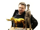 Фигурка золотого теленка "на блюдечке с голубой каемочкой", которую держит Балаганов, действительно блестит как золотая. Многие думают, что так ее натерли руки многочисленных желающих ее погладить. Но на самом деле "теленка" блестящим сделали заранее, еще в процессе отливки.