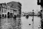11 апреля 1908 года из-за весеннего таяния снега и не вовремя начавшихся дождей вода в Москве–реке стала прибывать и за сутки поднялась на 9,35 метров (для сравнения - во время крупнейшего наводнения в Петербурге в 1824 году вода поднялась "всего лишь" на 3,27м). Это стало одной из крупнейших природных катастроф в Москве. Было затоплено 20% территории, особенно досталось правобережной части города - району Дорогомилово, улицам Якиманка и Пятницкая. Река и Водоотводный канал слились в одно русло шириной 1,5 км, а всего вода накрыла около 100 километров городских улиц и переулков. Дома в Замоскворечье и даже стены Кремля были затоплены в среднем на 2,3 метра от уровня мостовой. Пострадало почти 200 тысяч человек, были и погибшие – но их количество никто не считал.