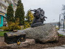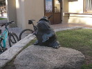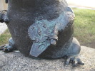Владимир Пантелеев не только восстановил узелок и приделал его покрепче, но и добавил к "лягушке" новый элемент - сундучок-копилку, чтобы туристы кидали монеты именно туда, а не засовывали их куда не попадя. Интересно - а хорошо ли скульптор закрепил сундучок? А то ведь наши люди и его могут умыкнуть.