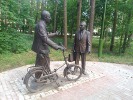 В городе науки Дубне много памятников ученым, что вполне естественно. Но все они выглядят именно как памятники и мало подходят под определение "необычные". Но совсем недавно (в 2013г.) там устновили памятник двум выдающимся ученым-физикам - Понтекорво и Джелепову, который я не смог обойти стороной.