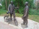 Велосипед на памятнике возник неслучайно. Известно, что они оба кроме науки увлекались спортом. Например, в Дубне проводится традиционный теннисный турнир памяти Венедикта и Бориса Джелеповых. А коллега Понтекорво Николай Русакович рассказывал: «Однажды Бруно Максимович остановил на улице молодого физика с велосипедом, и тот приготовился выслушать критику в свой адрес. Но Понтекорво вместо разноса спросил его: «А вы умеете ездить на велосипеде задом наперед?» И показал молодому коллеге, как это делается».