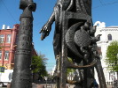 В начале 2000-х годов администрация Могилева задумалась о реконструкции одной из центральных площадей города. Там стояли скромные солнечные часы, а хотелось "чего-нибудь этакого". Для создания "этакого" решили пригласить известного минского скульптора Владимира Жбанова (о нем и его работах можно почитать на странице "барон Мюнхгаузен в Минске") и не прогадали.