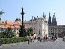 Пражский меридиан появился в 1652 году и представлял собой линию из трех рядов булыжников, шедших строго на север под углом к основной кладке. Марианская колонна была установлена тогда же - 13 июля 1652 года ее освятили в присутствии императора Фердинанда III. Она посвящалась Деве Марии в благодарность за защиту города от шведов в 30-летней войне.