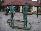 Около музея Кафки в Праге расположена одна из самых неоднозначных и скандальных пражских скульптур: двое мужчин стоят по щиколотку в фонтане и справляют малую нужду. При этом чаша фонтана имеет очертания карты Чехии.