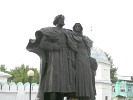 На Руси с незапамятных времен день 8 июля отмечается как день благоверных святых Петра и Февронии, которые считаются покровителями семьи и брака. В современной России этот день празднуется с 2008 года, когда Совет Федерации с подачи супруги Д.Медведева Светланы утвердил эту дату как праздничную. После этого памятники благоверным стали расти как грибы - я знаю о 33 монументах, а всего их, по некоторым подсчетам, более 60. Думаю, по этому показателю с ними могут посоперничать только памятники Пушкину (памятники Ленину не в счет - тут он абсолютный чемпион).