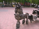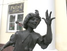 А жаль - скульптура получилась весьма примечательной и популярной у публики. Эта популярность сыграла злую шутку - посетители театра и просто прохожие не только фотографируются рядом, но норовят залезть в коляску к Мальвине и на колени к Барабасу. Но самым "пострадавшим" оказался сам Буратино - за три года его конструкция (внутри ее скрепляли всего 3 стержня) расшаталась и могла просто упасть. Учитывая вес скульптуры (200 килограмм), это становилось весьма опасным. В результате в 2010 году Буратино был отправлен на реставрацию, в ходе которой его основательно укрепили.