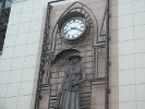 Но в Калуге есть еще одна "Дама с зонтиком" - это барельеф под часами на одном из домов на Театральной площади. Ее автор - мастер художественной ковки Владимир Журавлев. Он выполнил "Даму" по эскизу художника-архитектора Евгения Голышева. По этому эскизу фигура женщины была контурной, но Журавлев предложил сделать ее наполовину объемной.