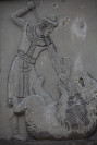 Еще одна неясность связана с оружием князя - секирой. Известно, что обычно на Руси на медведя ходили с рогатиной. Предположим, что нападение на дружину князя было неожиданным и он схватил первое, что попалось под руку. Но почему тогда на барельефе памятника Ярославу Мудрому он изображен повалившим зверя оружием, напоминающим именно рогатину?