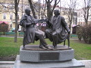Некоторые историки утверждают, что в жизни Дунин-Марцинкевич и Монюшко недолюбливали друг друга. Поэтому, мол, их соседство на композиции выглядит несколько странно. Но ведь речь идет о творческих людях, создателях-творцах, а не о друзьях-приятелях. Ни у кого же не возникает вопросов, что на одном памятнике изображены Минин и Пожарский - а ведь они не только не были друзьями, между ними была и сословная пропасть.