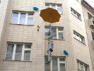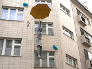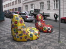 Над небольшой площадью Профсоюзов в Праге висят два человека: лысый импозантный мужчина в деловом костюме с кейсом в руке и женщина в юбке и блузке (при этом почему-то босая). Они свисают, зацепившись зонтиками за провода, и что-то (или кого-то) высматривают внизу. А внизу под висящими расположена пара ярко раскрашенных кресел: то ли чтобы прохожие присели и понаблюдали за "сладкой парочкой", ли саму парочку порывом ветра сдуло с кресел и они повисли на своих зонтиках.