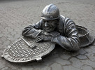 В 2001 году в Екатеринбурге появился памятник сантехнику. Расположен он у офиса компании "Уралэнергосервискомплект" и сделан по уже сложившемуся канону: работник газового ключа и вантуза высовывается из канализационного люка.