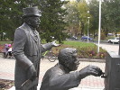 Автор композиции - екатеринбургский скульптор Диана Косыгина. Ее работа была отмечена в конкурсе "Малые архитектурные формы города Екатеринбурга: декоративная скульптура и архитектурные формы" в номинации "Лики нашего города". В некоторых источниках указывается, что она победила в этом конкурсе, в других - что заняла второе место. Как бы то ни было, именно ее скульптура украшает городскую набережную.