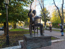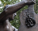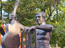 В описании памятника Высоцкому в Екатеринбурге я упоминал, что знаю только два парных памятника, посвященных как самому поэту, так и его супруге Марине Влади - в Екатеринбурге и в Волгодонске. Это не совсем так. Если приглядеться - на гитаре Высоцкого в Воронеже изображен маленький портрет Влади. Так что можно считать, что этот памятник посвящен и ей тоже.