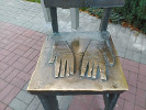 На спинке написана инструкция по пользованию: "Всяк садящийся заряжается добром и утрачивает жлобскую свою натуру". Сесть нужно, естественно, на сиденье с изображением ладоней - они как раз и должны заряжать садящегося доброй и положительной энергией.