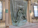Расположен монумент рядом с театром, носящем его имя - Театр им. Е.Вахтангова. Выполнен он довольно интересно: он как будто вмонтирован в стену. Сам Евгений Богратионович сидит перед занавесом, на котором высечены названия 100 спектаклей, составивших гордость и славу театра за его столетнюю историю (хотя сам Вахтангов как режиссер поставил всего 8 спектаклей).