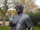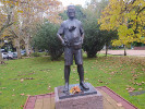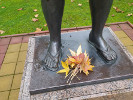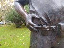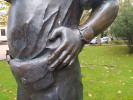 Но есть у него одна деталь, на которой его автор, скульптор Петр Хрисанов, заостряет особое внимание - нарочито большой и пухлый поясной кошелек, ведь сам Хрисанов называл туристов "главными кормильцами города".