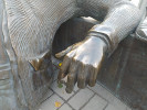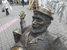 На его пузе, выпирающем из-под расстегнутого пиджака, написано "Гринвич" и изображена карта Великобритании с проходящим через нее Гринвичским меридианом. Авторы считают, что английское местечко Гринвич - очень важная точка на земном шаре, отсюда официальное название скульптуры - "Пуп Земли". Если продолжить эту логику, то получается, что их ТРЦ - это и есть пуп Земли.
