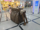В результате перед входом в ТРЦ появился лежащий на тротуаре "Гринвич", остальные скульптуры расположили внутри со стороны улицы 8 марта. На сайте компании "Брезгин и К" упоминается, что всего было установлено 8 скульптур, но при этом описание и фото приводится только для семи. Все они имеют общий лейтмотив - посвящены теме торговли и сферы услуг. Из этих 7 (или 8) скульптур я видел 6 (на остальные не хватило времени). Их фото привожу в основном разделе, остальные - в дополнительном.