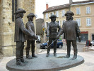 Это не единственные скульптуры, посвященные персонажам А.Дюма. Во Франции (что естественно), в Гаскони (что неудивительно, все-таки родина д'Артаньяна), в городке со странноватым названием Кондом, есть памятник всем четверым. Удивительно другое: если присмотреться, то у них тоже лица наших актеров. Ларчик открывается просто: автор памятника - Зураб Церетели.