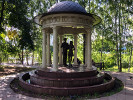 По замыслу автора, по подножью беседки должна стекать вода, как бы образуя фонтан. Но за несколько посещений этого места я никогда не видел его работающим.