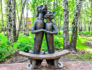 В интернете про скамью примирения в Московском нет практически никакой информации, кроме того, что она там есть. Поэтому данных ни о дате установки, ни об ее авторе у меня нет. Но учитывая, что она до мельчайших деталей повторяет скамью примирения в Видном, можно предположить, что автор у них один - Александр Рожников.