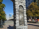 Если входить на нее с юга (со стороны площади Революции), то первое, что встречается на пути - городские ворота. Стилистически они повторяют (а не являются копией, как указывается во многих источниках) арку, которая сто лет назад встречала жителей и гостей города при въезде на Переселенческий пункт. Отличий между ними много - на нынешней красуются двуглавые орлы на башенках, герб Челябинска между ними, да и форма башен отличается. На самих башенках расположены рельефы: левый посвящен Челябинску старому, во время его основания в 1736 году, а правый "отвечает" за Челябинск современный, начала XXI века.