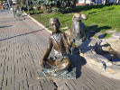 Не только птичка пользуется бешенной популярностью, но и вся композиция - многие норовят присесть на одного верблюда, погладить другого. А главное, скульптура считается памятником счастья в Челябинске - по легенде, для обретения этого самого счастья, нужно бросить монетку (а лучше несколько) в руку мальчика и погладить его по голове. А чтобы счастья было наверняка много - нужно насыпать в ту же руку семечек для птички.