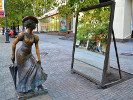 Давным-давно, когда нынешняя пешеходно-туристическая улица Кирова в Челябинске называлась Уфимской, там располагались самые шикарные особняки, цирюльни, и, естественно, магазины. О тех временах нам ныне напоминает "Модница", стоящая у зеркала и то ли примеряющая только что купленный наряд, то ли оценивающая - хорошо ли ей уложили прическу в салоне красоты. Не зря ее еще называют "Кокотка" или "прекрасная дама".