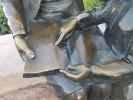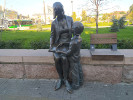 Официальное название композиции - "Мать и сын". Иногда встречается название "Мама читает книгу сыну". Но некоторые источники упорно называют ее "Мать, дитя и голубь" (посмотрите, например, карты Яндекса - там указано именно это название). Причем здесь голубь? Ведь не то что голубя (кроме гуляющих рядом по мостовой сизарей), но и никакой другой птицы там не наблюдается.