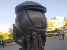 Совсем рядом с Мамой с сыном на челябинской Кировке стоит странный и необычный арт-объект: вытянутые вверх руки держат мяч, увенчанный кепкой.