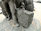 Воплощение идеи в металле поручили екатеринбургскому скульптору Владимиру Кривушину. Он изобразил стоящих на стилизованном земном шаре мужчину и женщину, нагруженных челночными сумками, баулами и тележками - непеменными атрибутами челночной жизни. Помнится, в начале 2000-х годов мне потребовалось по служебным делам добраться из Благовещенска до Сковородино. Весь поезд состоял из общих вагонов, и все они снизу доверху были забиты этими знаменитыми полосатыми сумками. Я с трудом нашел свободное место и провел ночь в скрюченной позе между ними.